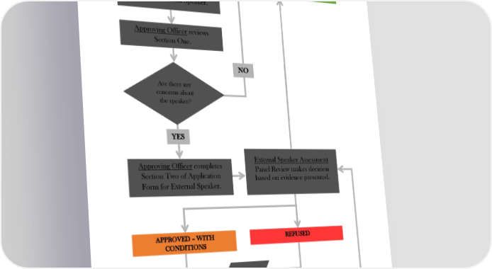! 5. Overview of Process to Approve an External Speaker Principal Organiser submits APPROVED – NO CONDITIONS Section One of Application Form for External Speaker. Approving Officer reviews Section One. NO Are there any concerns about the speaker? YES Approving Officer completes External Speaker Assessment Section Two of Application Panel Review makes decision based on evidence presented. Form for External Speaker. APPROVED – WITH REFUSED CONDITIONS Appeal REFUSAL / APPEAL CONDITIONS SUCCESSFUL UPHELD 21! !