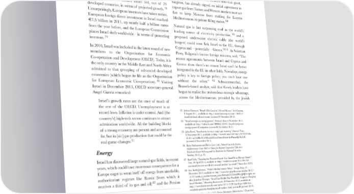 HJS Friends of Israel Report FINAL_HJS Friends of Israel Report FINAL.qxd 06/02/2014 09:55 Page 14 ADDED VALUE: ISRAEL’S STRATEGIC WORTH TO THE EU AND ITS MEMBER STATES Israel as a prime target Gulf states.838485 The Tamar offshore gas field is the for EU commerce largest private infrastructure project in the country’s history,86 generating 300 million cubic feet of gas a Israel’s economy is not only one of the world’s most day, but significantly smaller than the still-untapped dynamic, but has weathered the global economic crisis Leviathan field. 87 Indeed, Russia’s state-run giant, far better than most other Western economies. New Gazprom, has already signed an initial agreement to York’s MSCI index ranked Israel 3rd, out of 24 export gas from Tamar, and Western markets must act developed countries, in terms of projected growth.78 Unsurprisingly, European investors have taken notice. fast to keep Moscow from making the Eastern Med 88 European foreign direct investment in Israel reached iterranean its private filling station. €7.5 billion in 2011, up nearly half a billion euros Natural gas is fast surpassing coal as the world’s from the year before, and the European Commission leading source of electricity production, 89 and a places Israel sixth worldwide – in terms of protecting proposed underwater electric cable (the world’s investors.79 longest) could soon link Israel to the EU, through Cyprus and – potentially – Greece.90 91 As Solomon In 2010, Israel was included in the latest round of new Passy, Bulgaria’s former foreign minister, said, “The members to the Organisation for Economic recent agreements between Israel and Cyprus and Co-operation and Development (OECD). Today, it is e’s no reason Israel can’t be better the only country in the Middle East and North Africa Greece show ther admitted to that grouping of advanced developed integrated in the EU in other fields. Nowadays, energy economies (which began its life as the Organisation policy is key to foreign policy; you can’t have one for European Economic Co-operation). 80 Visiting without the other.” 92 Schwammenthal, the Israel in December 2013, OECD secretary-general Brussels-based analyst, said that Greek leaders have Angel Gurría remarked: begun to realise the tremendous strategic advantage, across the Mediterranean, provided by the Jewish Israel’s growth rates are the envy of much of the rest of the OECD. Unemployment is at record lows. Inflation is under control. And [the 83 Joshua Hammer, “Israel: IEI’s Land of Oil and Money,” Fast Company, 8 August 2011, available at: http://www.fastcompany.com/1769210/ country’s] high-tech sector continues to attract israel-ieis-land-oil-and-money (accessed 8 November 2013). 84 “Israel emerges as admiration worldwide. All the building blocks energy power,” Financial Times, 6 November 2013, available at: http://video.ft.com/2808621410001/Israel-emerges-as- of a strong economy are present and accounted energy-power/Companies (accessed 6 November 2013). 85 John Reed, “Israel set to become major gas exporter,” Financial Times, for, but its [sic] gas production that could be the 6 November 2013, available at: http://www.ft.com/intl/cms/s/0/82e01bda- real game-changer.81 4518-11e3-b98b-00144feabdc0.html?siteedition=intl#axzz2jr5Zp7yU (accessed 6 November 2013). 86 R oby Nathanson and Ro’ee Levy (eds), Natural Gas in the Eastern Energy Mediterranean: Casus Belli or Chance for Regional Cooperation? (Tel Aviv: Friedrich-Ebert-Stiftung and the Institute for National Security Studies, 2012), p. 52. Israel has discovered large natural-gas fields, in recent 87 Karl Vick, “Tapping the Promised Land: Can Israel Be an Energy Giant?,” years, which could have enormous consequences for a Time, 30 April 2013, available at: http://world.time.com/2013/04/30/ can-israel-become-as-oil-rich-as-saudi- abia/ (accessed 7 November 2013). ar Europe eager to wean itself off energy from unreliable, 88 See: Keith Johnson, “Putin’s Mediterranean Move,” Foreign Policy, 27 authoritarian regimes like Russia (from which it December 2013, available at: http://www.foreignpolicy.com/articles/2013/ 12/27/putin_s_mediterranean_move#sthash.NGNc6z8M.nJyhlJVe.dpbs; see receives a third of its gas and oil) 82 and the Persian also: Jonathan Ferziger, “Israel Gas Riddle Has Woodside, Gazprom Hanging: Israel Markets,” Bloomberg Businessweek, 30 December 2013, available at: http://www nessweek.com/news/2013-12-29/israel-gas-riddle-has- .busi woodside-gazprom-hanging-israel-markets (both accessed 8 January 2014). 78 “Trading with Israel,” UK Israel Business, available at: 89 “Electricity Generation,” U.S. Energy Information Administration, 5 December http://www.ukisraelbusiness.co.uk/?page_id=104 (accessed 29 October 2013). 2012, available at: http://www.eia.gov/forecasts/aeo/er/early_elecgen.cfm 79 Ibid. (accessed 20 November 2013). 80 “Israel,” OECD, available at: http://www.oecd.org/israel 90 Michele Kambas, “Cyprus group plans Greece-Israel electricity link,” Reuters, (accessed 16 December 2013). 23 January 2012 lable at: http://uk.reuters.com/article/2012/01/23/ , avai 81 “Launch of OECD’s 2013 Economic Survey of Israel,” OECD, 8 December electricity-mediterranean-cable-idAFL5E8CN25B20120123 2013, available at: http://www.oecd.org/about/secretary-general/ (accessed 6 November 2013). launchofoecds2013economicsurveyofisrael.htm (accessed 23 December 2013). 91 Katie Carnie, Cleve Jones, Peter Feeney and John Reed, “Options for 82 “Energy Dialogue EU – Russia: The Ten exporting Israeli gas,” Financial Times, 6 November 2013, available at: th Progress Report,” European http://www.ft.com/intl/cms/s/0/b62ba372-463c-11e3-9487- Commission (2009), available at: http://ec.europa.eu/energy/ 00144feabdc0.html#axzz2jr5Zp7yU (accessed 6 November 2013). international/bilateral_cooperation/russia/doc/reports/progress10_en.pdf (accessed 6 November