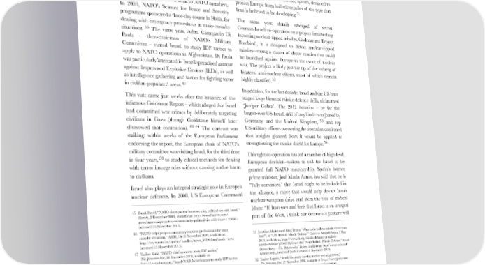 HJS Friends of Israel Report FINAL_HJS Friends of Israel Report FINAL.qxd 06/02/2014 09:55 Page 11 ADDED VALUE: ISRAEL’S STRATEGIC WORTH TO THE EU AND ITS MEMBER STATES and security expertise on different subjects, an increase (or EUCOM, the US military command which in the number of joint Israel-NATO military exercises includes Europe and Israel) installed an X-band and further cooperation in the fight against nuclear missile-shield radar base in Israel’s Negev desert. The proliferation.”45 r one in Turkey, is part of the base, along with a simila Israel’s experience in dealing with terrorism and ‘Aegis’ US-NATO missile-defence system, designed to guerrilla groups has been a boon to NATO members. protect Europe from ballistic missiles of the type that Iran is believed to be developing.51 In 2009, NATO’s Science for Peace and Security programme sponsored a three-day course in Haifa, for The same year, details emerged of secret rocedures in mass-casualty German-Israeli co-operation on a project for detecting dealing with emergency p situations. 46 The same year, Adm. Giampaolo Di incoming nuclear-tipped missiles. Codenamed ‘Project Paola – then-chairman of NATO’s Military Bluebird’, it is designed to detect nuclear-tipped oy missiles that could Committee – visited Israel, to study IDF tactics to missiles among a cluster of dec apply to NATO operations in Afghanistan. Di Paola be launched against Europe in the event of nuclear was particularly interested in Israeli specialised armour war. The project is likely just the tip of the iceberg of against Improvised Explosive Devices (IEDs), as well bilateral anti-nuclear efforts, most of which remain as intelligence gathering and tactics for fighting terror highly classified.52 reas.47 in civilian-populated a In addition, for the last decade, Israel and the US have This visit came just weeks after the issuance of the staged large biennial missile-defence drills, nicknamed infamous Goldstone Report – which alleged that Israel ‘Juniper Cobra’. The 2012 iteration – by far the d – was joined by had committed war crimes by deliberately targeting largest-ever US-Israeli drill of any kin civilians in Gaza (though Goldstone himself later Germany and the United Kingdom, 53 and top disavowed that contention). 48 49 The contrast was US-military officers overseeing the operation confirmed striking: within weeks of the European Parliament that insights gleaned from it would be applied to endorsing the report, the European chair of NATO’s strengthening the missile shield for Europe.54 the third time military committee was visiting Israel, for This tight co-operation has led a number of high-level in four years,50 to study ethical methods for dealing European decision-makers to call for Israel to be with terror insurgencies without causing undue harm granted full NATO membership. Spain’s former to civilians. t he is prime minister, José María Aznar, has said tha Israel also plays an integral strategic role in Europe’s “fully convinced” that Israel ought to be included in nuclear defences. In 2008, US European Command the alliance, a move that would help thwart Iran’s nuclear-weapons drive and stem the tide of radical 45 Barak Ravid, “NATO okays pact to boost security, political ties with Israel,” Islam: “If Iran sees and feels that Israel is an integral Haaretz, 2 December 2008, available at: http://www.haaretz.com/ part of the West, I think our deterrence posture will news/nato-okays-pact-to-boost-security-political-ties-with-israel-1.258681 (accessed 13 November 2013). 46 “NATO helps prepare emergency response professionals for mass 51 Jonathan Masters and Greg Bruno, “What i casualty situations,” NATO, 16-18 November 2009, available at: s the ballistic missile threat from http://www.nato.int/cps/en/natolive/news_59390.htm?mode=news Iran?”, in “U.S. Ballistic Missile Defense,” Council on Foreign Relations, 1 May (accessed 13 November 2013). 2013, available at: http://www.cfr.org/missile-defense/us-ballistic- 47 Yaakov Katz, “NATO chief comes to study IDF tactics,” missile-defense/p30607#p6; see also: “Aegis Ballistic Missile Defense,” Missile The Jerusalem Post Defense Agency – U.S. Department of Defense, available at: http://www.mda.mil/ , 20 Nove mber 2009, available at: system/aegis_bmd.html (both accessed 18 November 2013). http://www.jpost.com/Israel/NATO-chief-comes-to-study-IDF-tactics kov Lappin, “Israel, Germany develop nuclear warning system,” (accessed 13 November 2013). 52 Yaa The Jerusalem Post, 17 November 2008, available at: http://www.jpost.com/ 48 “European Parliament backs Goldstone report,” International/Israel-Germany-develop-nuclear-warning-system The Associated Press, 3 October 2010, available at: (accessed 19 November 2013). http://www.ynetnews.com/articles/0,7340,L-3860934,00.html 53 Tony Capaccio, “U.S.-Israeli Military Exercise Sending Message to Iran,” (accessed 13 November 2013). Bloomberg Businessweek, 15 October 2012, available at: 49 Ethan Bronner and Isabel Kershner, “Head of U.N. Panel Regrets Saying -dot-israeli- http://www.businessweek.com/news/2012-10-15/u-dot-s Israel Intentionally Killed Gazans,” The New York Times, 2 April 2011, available military-exercise-sending-message-to-iran (accessed 13 November 2013). at: http://www.nytimes.com/2011/04/03/world/middleeast/03goldstone.html 54 Dan Williams, “U.S. sees Israel drill helping Europe missile shield,” Reuters, 22 (accessed 20 November 2013). October 2009, available at: http://www.reuters.com/article/2009/10/22/ 50 Yaakov Katz, “NATO chief comes to study IDF tactics,” us-israel-usa-iran-idUSTRE59L3GC20091022; see also: Michael Barajas, The Jerusalem Post, 20 November 2009, available at: “US-Israel drill may shape European missile shield,” The Associated Press, 27 http://www.jpost.com/Israel/NATO-chief-comes-to-study-IDF-tactics able at: http://seattletimes.com/html/nati