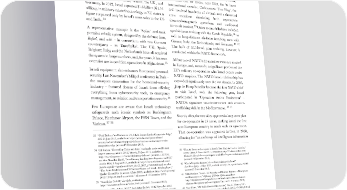 HJS Friends of Israel Report FINAL_HJS Friends of Israel Report FINAL.qxd 06/02/2014 09:55 Page 10 ADDED VALUE: ISRAEL’S STRATEGIC WORTH TO THE EU AND ITS MEMBER STATES Sales of weapons and Joint training and NATO homeland-security systems Israel conducts joint training exercises with European Israel’s arms exports jumped 74%, in 2013,33 making militaries nearly every year. In November and the country of under 8 million people the world’s December 2013, it hosted the German; Italian; Polish; sixth-largest arms exporter – after military-technology and American air forces, near Eilat, for its latest heavyweights the US, Russia, France, the UK, and international exercise. Codenamed ‘Blue Flag’, the Germany. In 2012, Israel exported $1.6 billion (€1.16 drill involved hundreds of aircraft and a thousand billion), in military-related technology, to EU states, a crew members simulating both asymmetric figure surpassed only by Israel’s arms sales to the US (counterinsurgency) operations and traditional and India.34 air-to-air combat.39 Other recent drills have included A representative example is the ‘Spike’ anti-tank special-forces training with the Czech Republic,40 as portable missile system, designed by the defence firm, well as long-distance air-force bombing runs with Rafael, and sold – in consortium with two German Greece; Italy; the Netherlands; and Germany.41 42 counterparts – as ‘EuroSpike’. The UK; Spain; The bulk of EU-Israel joint training, however, is Belgium; Italy; and the Netherlands have all acquired conducted within the NATO framework. the system in large numbers, and, for years, it has seen All but two of NATO’s 28 member states are situated extensive use in coalition operations in Afghanistan.35 in Europe, and, naturally, a significant portion of the Israeli equipment also enhances Europeans’ personal EU’s military co-operation with Israel occurs under security. Last November’s Milipol conference in Paris – NATO auspices. The NATO-Israel relationship has the marquee convention for the homeland-security expanded significantly over the last decade. In 2005, industry – featured dozens of Israeli firms offering Jaap de Hoop Scheffer became the first NATO chief everything from cybersecurity tools, to emergency to visit Israel, and, the following year, Israel management, to aviation and transportation security.36 participated in ‘Operation Active Endeavour’ – NATO’s signature counterterrorism and counter- Few Europeans are aware that Israeli technology trafficking drill in the Mediterranean.43 44 safeguards such iconic symbols as Buckingham Palace, Heathrow Airport, the Eiffel Tower, and the Shortly after, the two sides approved a long-term plan Vatican.37 38 for co-operation in 27 areas, making Israel the first non-European country to reach such an agreement. 33 “‘Peak Defence’ on Horizon as US, UK & Europe Erodes Competitive Edge,” That co-operation was upgraded further, in 2008, IHS, 24 June 2013, available at: http://press.ihs.com/press-release/ allowing for “an exchange of intelligence information country-industry-forecasting/peak-defence-horizon-us-uk-europe-erodes- competitive-edge (accessed 9 November 2013). 34 Gili Cohen, “Overtaking China and Italy: Israel ranks as the world’s sixth 39 “Five Air Forces to Participate in Israel’s ‘Blue Flag’ Air Combat Exercise,” largest arms exporter in 2012,” Haaretz, 25 June 2013, available at: Defense Update, 4 November 2013, available at: http://defense-update.com/ http://www.haaretz.com/news/diplomacy-defense/.premium-1.531956; 20131104_five-air-forces-participate-israels-blue-flag-air-combat-exercise.html see also: Alon Ben David, “Israel Among Leading s Exporters In 2012,” Arm (accessed 19 November Aviation Week, 5 August 2013, available at: http://www.aviationweek.com/ 2013). Article.aspx?id=/article-xml/AW_08_05_2013_p76-600058.xml; see also: 40 “Czech Republic discusses joint military training with Israel,” “The Arms Trade between EU Member States and Israel – Briefing Paper,” Azeri Press Agency, 17 May 2013, available at: http://en.apa.az/news/193008 Quaker Council for European Affairs (2009), available at: http://www.qcea.org/ (accessed 5 November 2013). 2010/12/bp-eu-israel-arms-trade/ (all accessed 17 December 2013). 41 Tsilla Hershco, “Israel – EU Security and Defence Relations – Divergences 35 “EuroSpike GmbH,” Eu and Convergences,” Diplomacy & Foreign Affairs, available at: roSpike, available at: http://www.eurospike.com/index.html (accessed 1 November 2013). http://diplomacyandforeignaffairs.com/israel-eu-security-and-defense- relations-divergences- 36 “Israel at Milipol Paris 2013,” Israel Export Institute, 19-22 November 2013, and-convergences/ (accessed 4 November 2013). available at: http://www.export.gov.il/files/publications/milipol2013-e-book/ 42 Yoav Zitun, “IAF holds distant-strike exercise,” Ynet, 11 February 2011, milipol%202013%20ppt.html (accessed 3 November 2013). available at: http://www.ynetnews.com/articles/0,7340,L-4142862,00.html 37 “Israel: Homeland Security Industry,” The Israel Export & International (accessed 6 November 2013). Cooperation Institute (2012), ava e at: http://www.export.gov.il/ 43 “NATO/Israel Cooperation in the framework of the Mediterranean ilabl uploadfiles/11_2012/cyber%20security_pages.pdf Dialogue,” NATO, 16 October 2006, available at: http://www.nato.int/docu/ (accessed 2 November 2013). pr/2006/p06-123e.htm; see also: Shlomo Ben-Ami srael and NATO – , “I 38 See: Itai Smuskowitz, “Israeli company to secure Vatican,” Ynet, Between Membership and Partnership,” Project Syndicate, 5 January 2010, 20 November 2008, available at: http://www.ynetnews.com/articles/ available at: http://www.project-syndicate.org/commentary/ 0,7340,L-3626206,00.html; see also: Andrea Tornielli, “The Vatican israel-and-nato---between-membership-and-partnership#cv invests in cutt