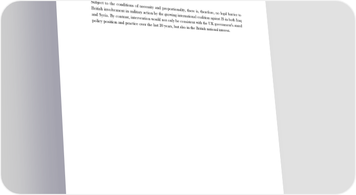 THE LEGAL CASE FOR BRITISH MILITARY ACTION IN IRAQ AND SYRIA In addition, the escalating humanitarian catastrophe in Syria meets the standard required by the UK permitting the use of force without a UNSC resolution under the doctrine of humanitarian intervention, provided the UK government can show that there are no other non-military options which would better achieve its humanitarian purpose. The British legal position regarding Operation Allied Force against Serbia in Kosovo in 1999 provides precedent for this interpretation. Subject to the conditions of necessity and proportionality, there is, therefore, no legal barrier to British involvement in military action by the growing international coalition against IS in both Iraq and Syria. By contrast, intervention would not only be consistent with the UK government’s stated policy position and practice over the last 20 years, but also in the British national interest. 15